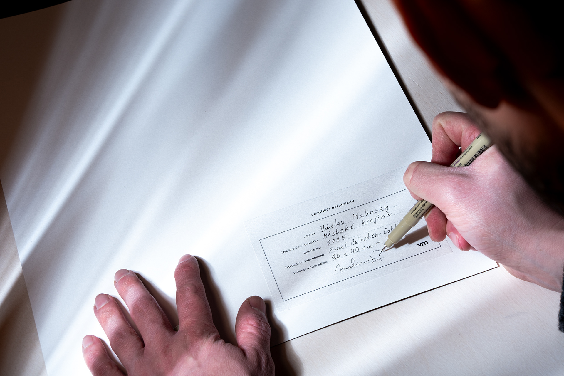 Každá fotografie je tištěna pigmentovým tiskem na archivní papír Hahnemühle Photo Rag Mat (308 g/m²) s garantovanou barevnou stálostí minimálně 100 let.