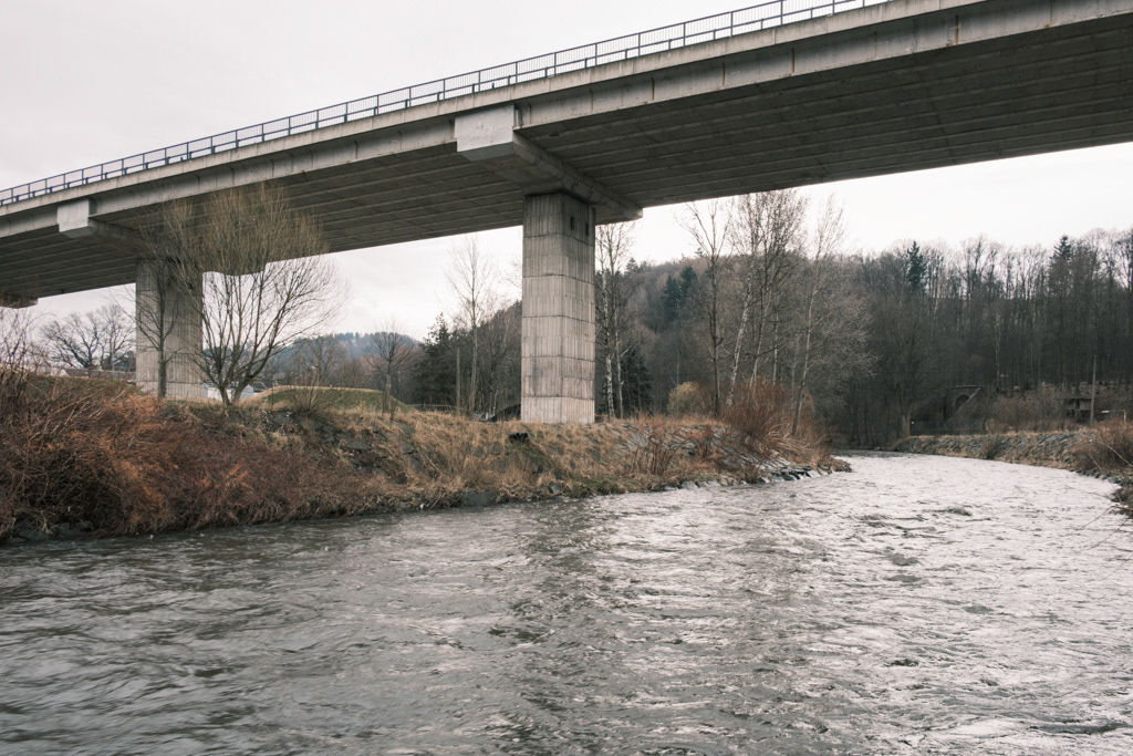 In my documentary series titled „Bound River,“ I explore and document the character of the Lusatian Neisse River, which plays a crucial role in the formation of the city of Liberec (formerly Riechenberg) – my hometown. My approach to documentation is systematic, tracing the river from its source in the Jizera Mountains to the point where it leaves our country. In the following years, I want to document the river and its surroundings up to the confluence with the Oder River along the German-Polish border. The most significant human interventions can be observed in the river’s urban sections in the cities of Liberec and Jablonec nad Nisou.